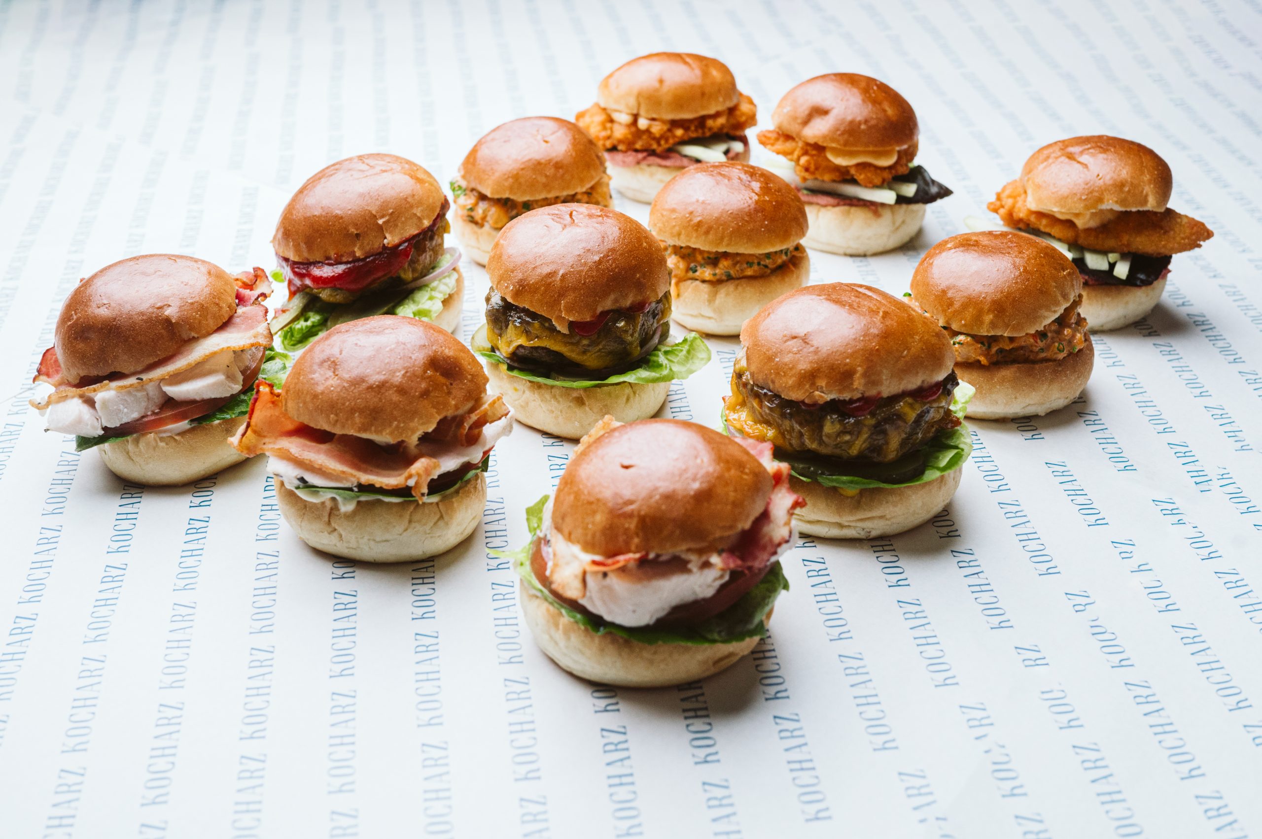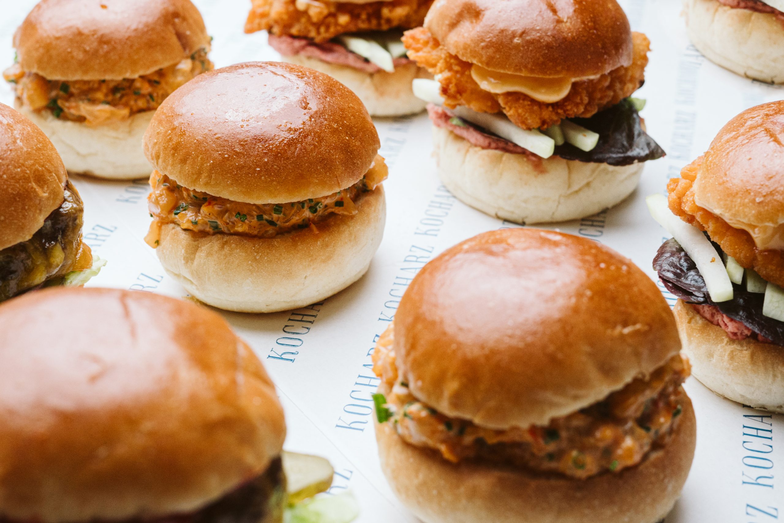 Brioche to maślane bułeczki, puszyste i delikatne. Mamy tutaj klasyczne miniburgery z wołowiną Black Angus i cheddarem, burratę z szynką cotto i pistacjami, czy chrupiącego kurczaka z piklowaną kalarepą i gochujang. Miniburgery – comfort food idealny na przyjęcie.